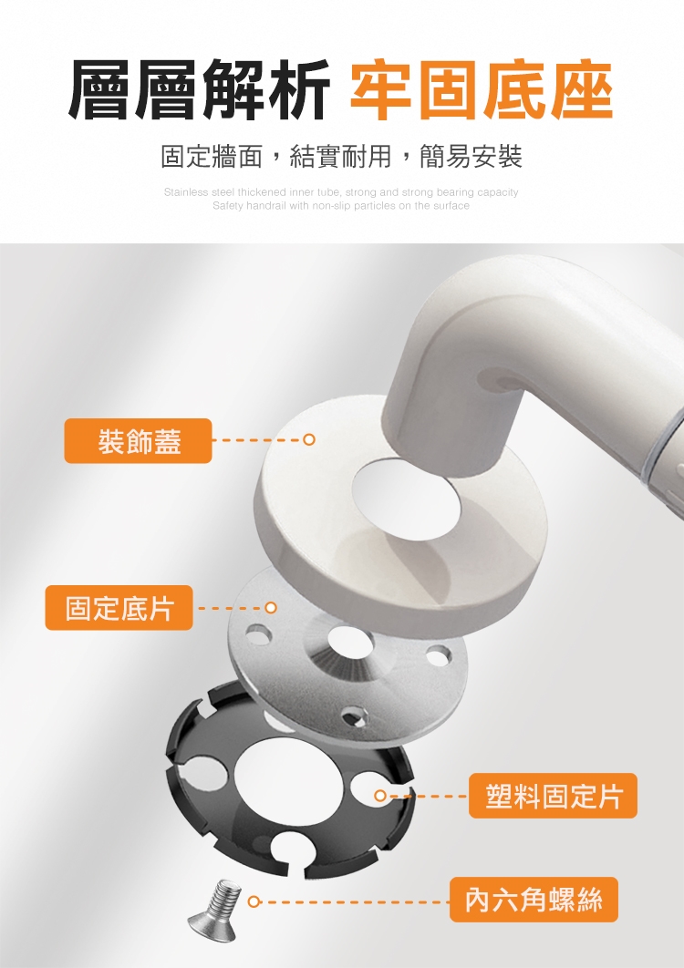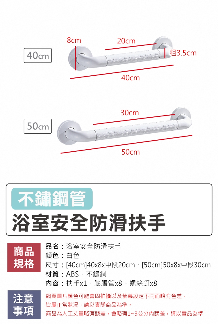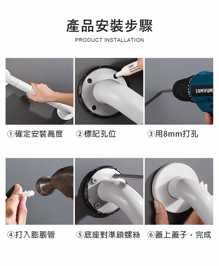 ◆ 內容:扶手x1、膨脹管x8、螺絲釘x8