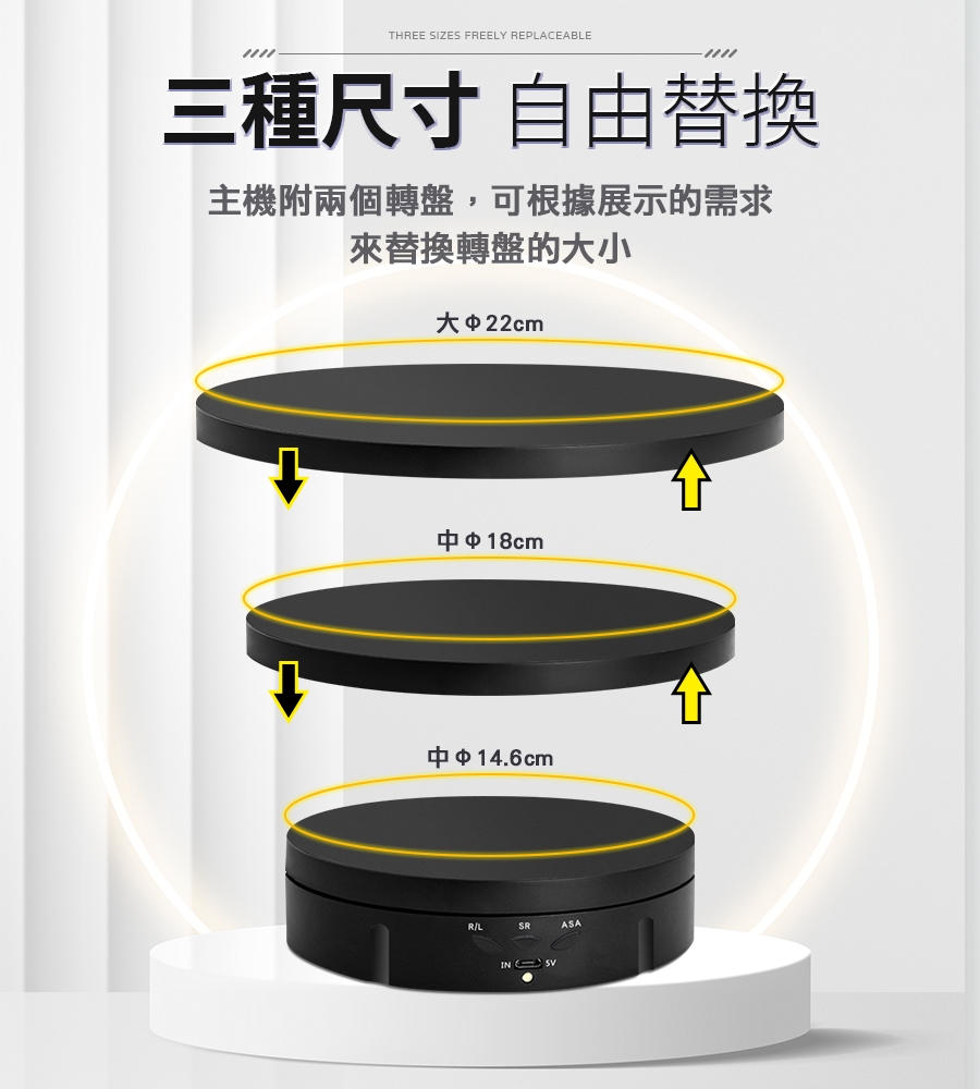 【三種尺寸】 擁有3種規格轉盤,適應各種尺寸展示物