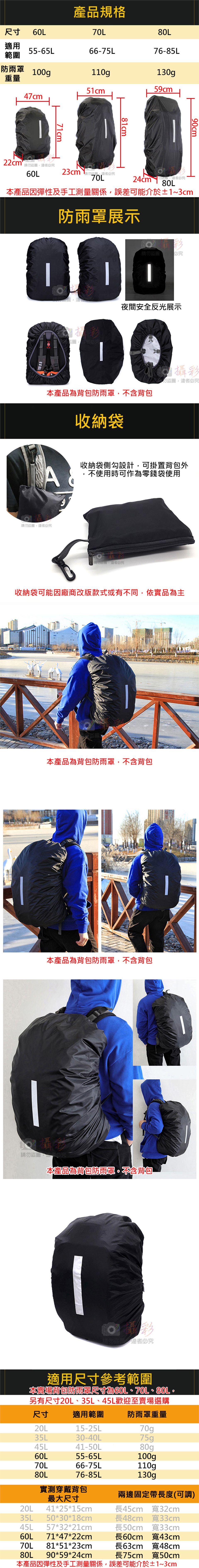 ★本賣場背包防雨罩尺寸為60L、70L、80L,另有尺寸20L、35L、45L歡迎至賣場選購★