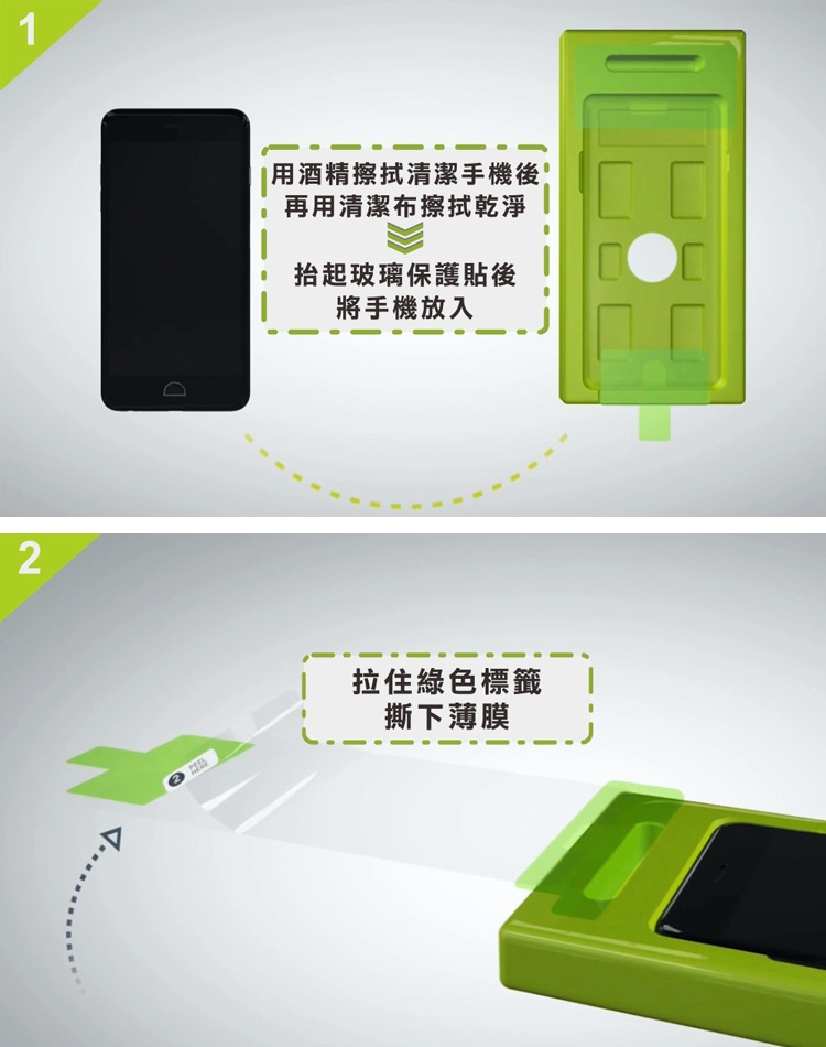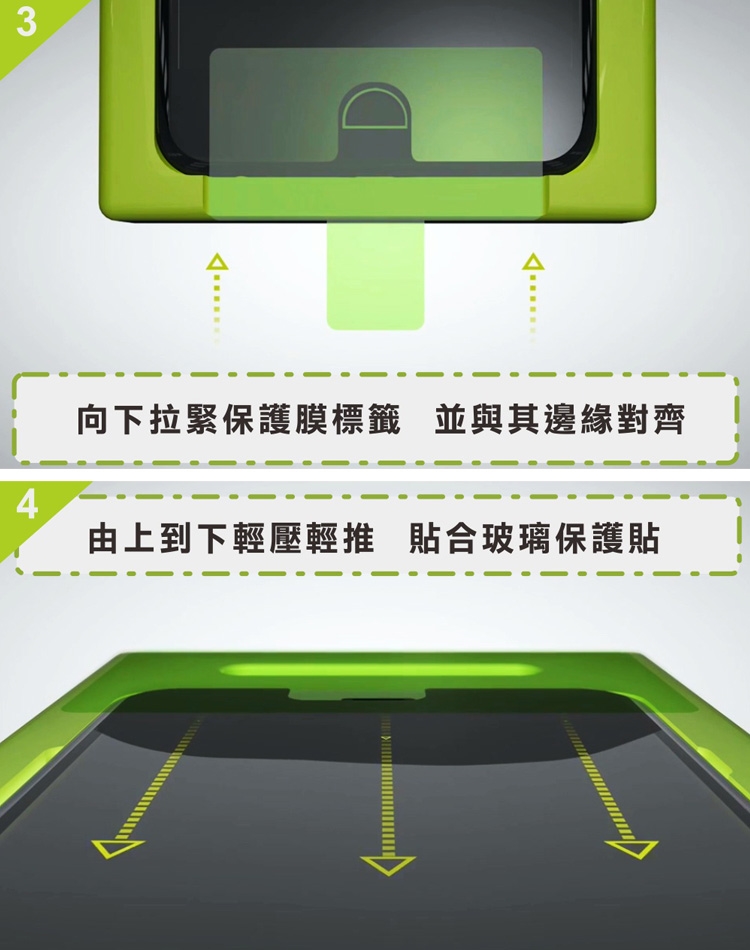 -貼保護貼時,用手輕輕把邊緣按壓服貼,若有氣泡殘留,請用手慢慢將氣泡推出即可