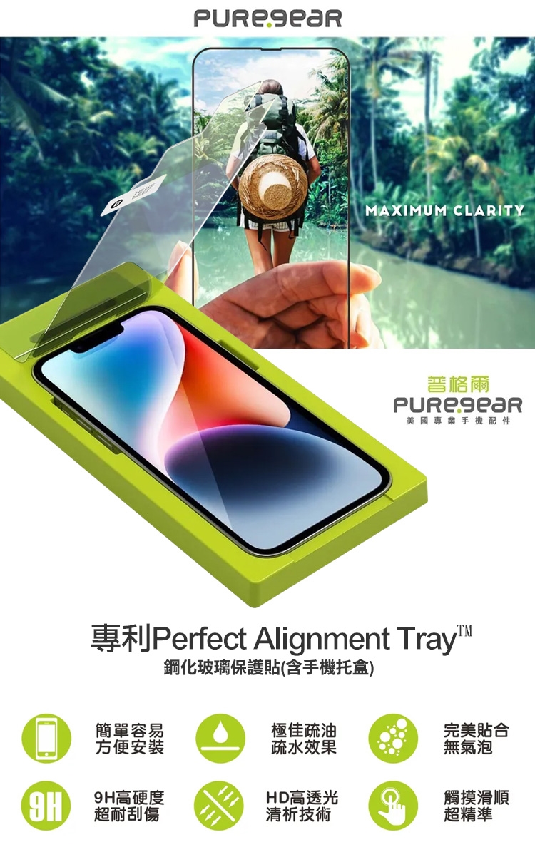PUREGEAR普格爾 for iPhone 14 Plus 簡單貼 9H鋼化玻璃保護貼(滿版)+專用手機托盤組合