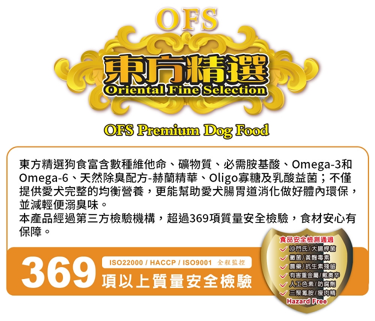糙米、玉米、麥粉、脫水肉粉(雞肉/鮭魚)、大豆、動物油脂(均衡脂肪酸)、植物纖維、啤酒酵母粉