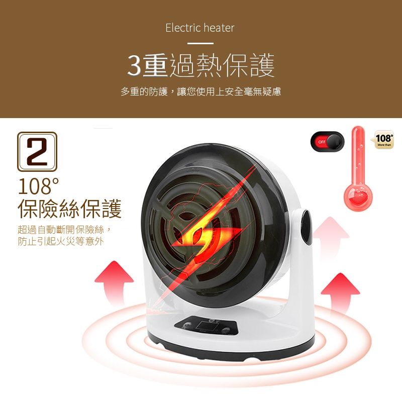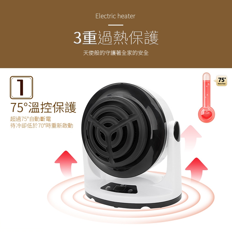 3重過熱保護,75度溫控保護、108度保險絲保護、單片機保護