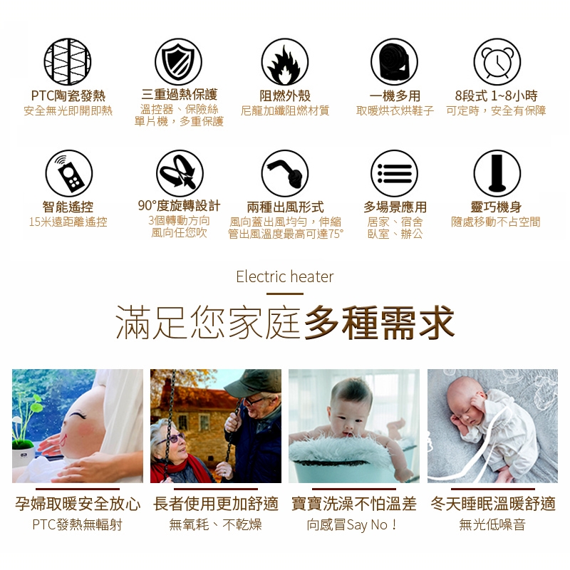 內置專業級PTC陶瓷發熱元件,即開即暖
