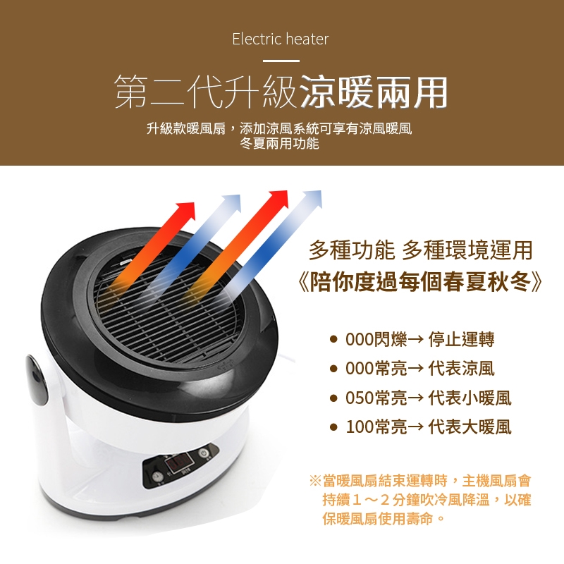 1/ 暖風扇停止吹送時,主機風扇會持續1~2分鐘吹冷風降溫,確保暖風扇使用壽命。