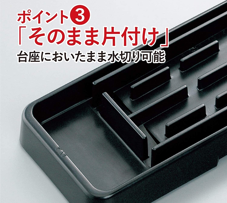 ●台座內部設計高度差,讓積水跟砥石底部不直接觸碰到。