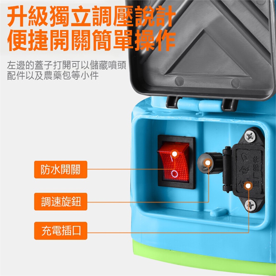 🤍手持調速旋鈕 , 使用時可直接用調速旋鈕開啟噴霧器 , 並旋轉旋鈕控制馬達轉速 , 控制出水量, 適用噴灑藥劑、農藥 , 使用更方便