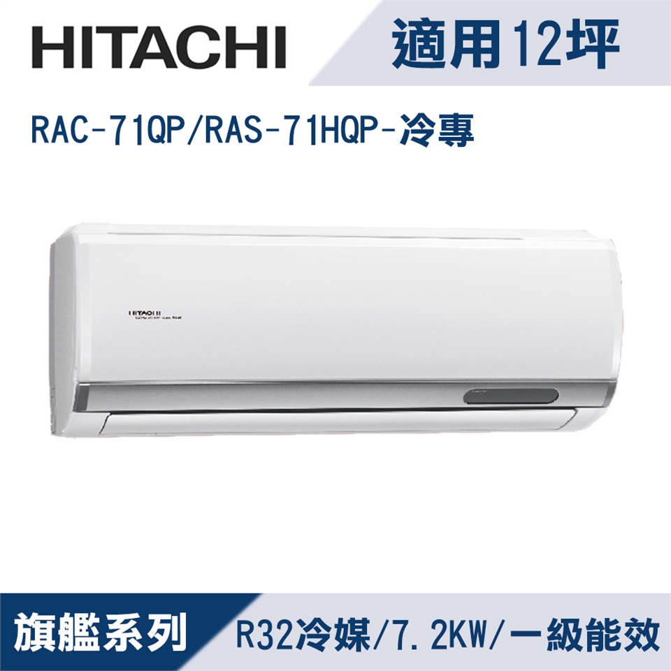 HITACHI日立12坪1級旗艦R32變頻冷專分離式冷氣RAC-71QP/RAS-71HQP