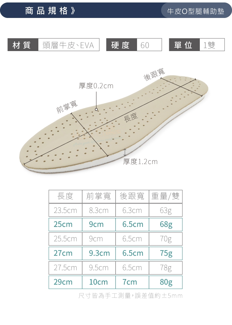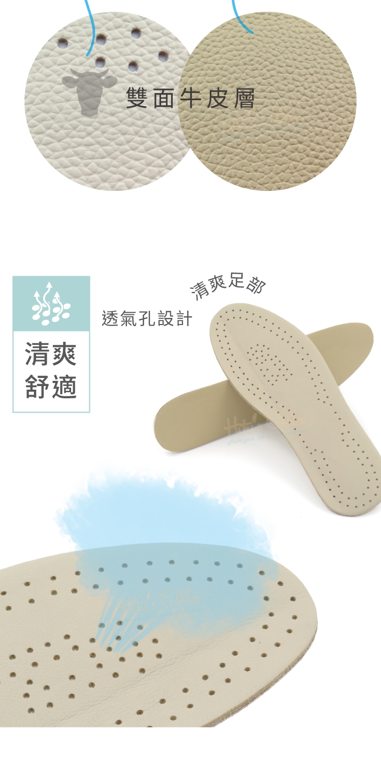 頭層牛皮:此鞋墊為原皮製作,不同批皮料會因顏色、