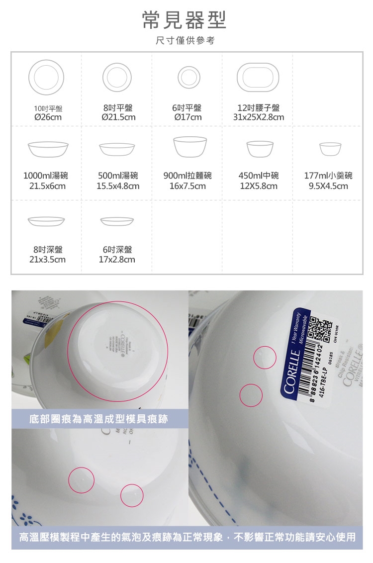 ※新的康寧餐具表面有一層透明的保護層,使用前請先清洗乾淨。