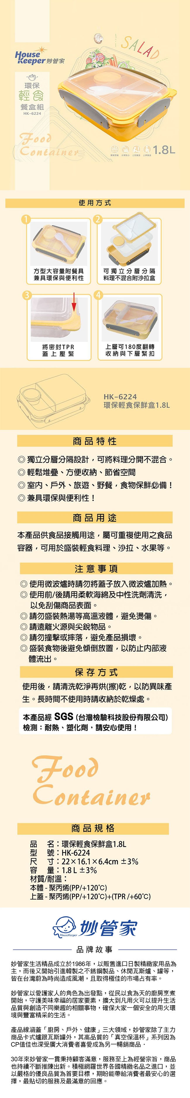妙管家 環保輕食保鮮盒1.8L 附匙 HK-6224
