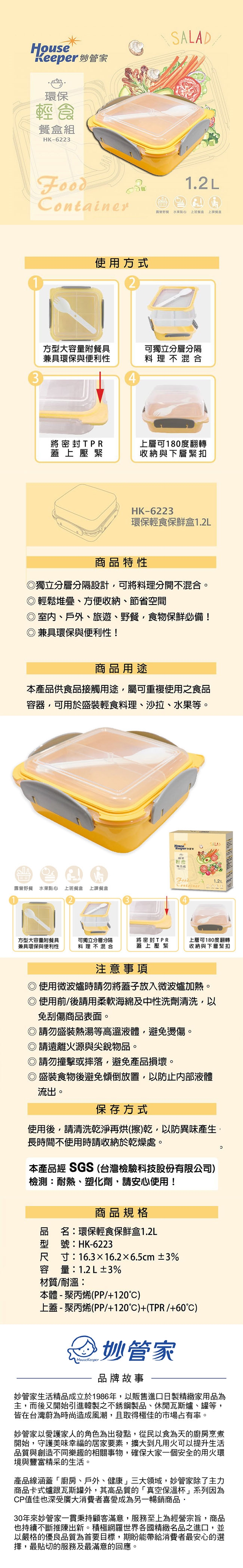 妙管家 環保輕食保鮮盒1.2L 附匙 HK-6223