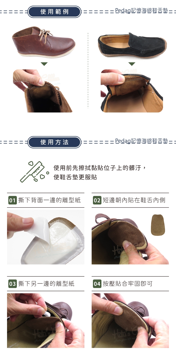 擦拭黏貼位子上的髒汙,使鞋舌墊更服貼