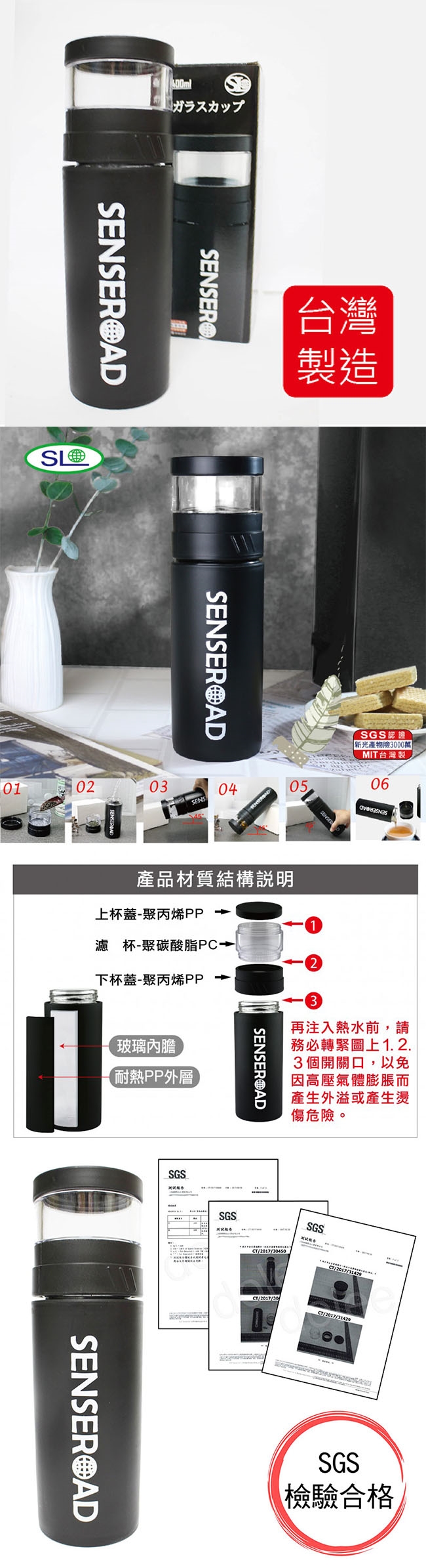 MIT台灣製 內膽玻璃泡茶樂活杯400ml R-1900-1