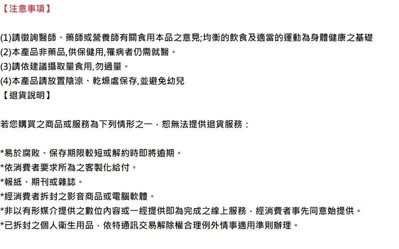 若您購買之商品或服務為下列情形之一,恕無法提供退貨服務: