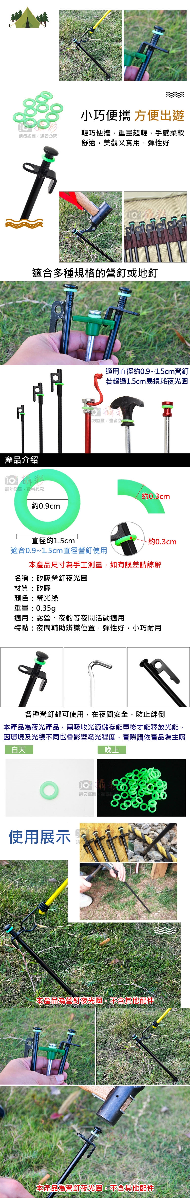 ※適用直徑約0.9~1.5cm營釘或地釘,若超過1.5cm較易損耗夜光圈※