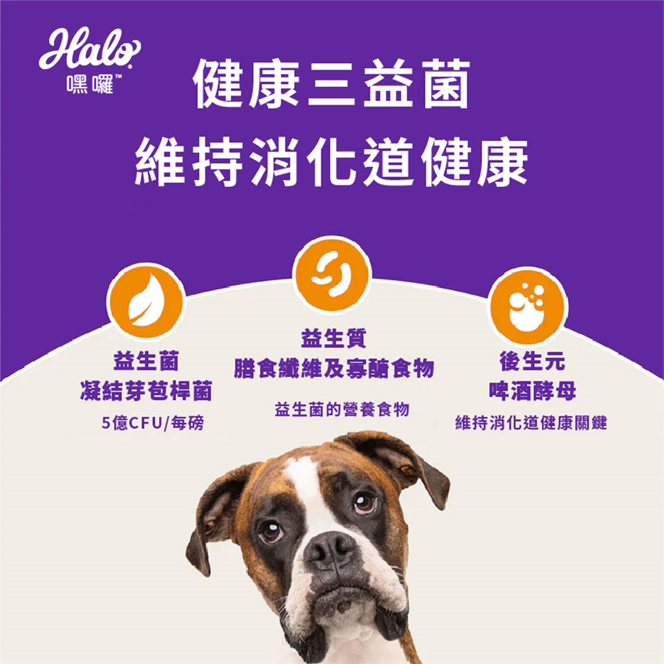 維生素,菊苣纖維,牛磺酸,礦物質,乾芽孢乳酸菌,氯化膽鹼,綜合維生素E(天然防腐劑),迷迭香萃取物,乳清粉