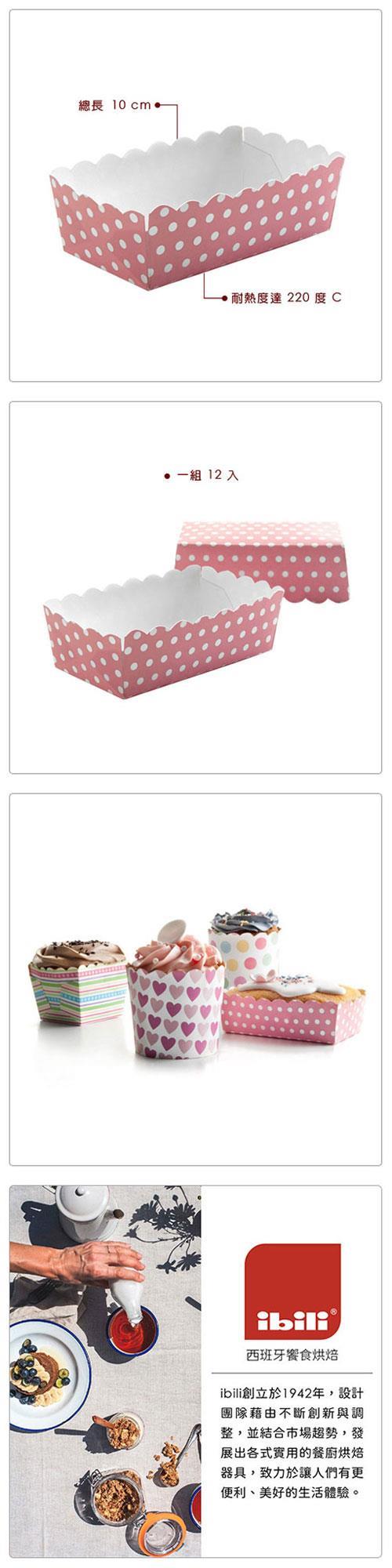 本商品一件入 (紙模 x 12)、耐熱度 220 度C,適用冷藏冷凍、烤箱,麵糊填裝勿超過模具 3/4 容量、不可重複使用。悠閒的下午就來做點心吧,看著熱騰騰的蛋糕出爐,心情都好起來了。Sweet 系列,以粉嫩色系呈現繽紛可愛的氛圍,發展出翻糖點心、烘焙裝飾的工具。硬挺的長方型防油蛋糕紙模,適合烘烤長型海綿蛋糕、磅蛋糕、水果鬆糕等糕點;繽紛圖案亦可作為派對點心或節慶小禮物,一次滿足視覺與味覺,輕鬆享受美好的午茶時光。
