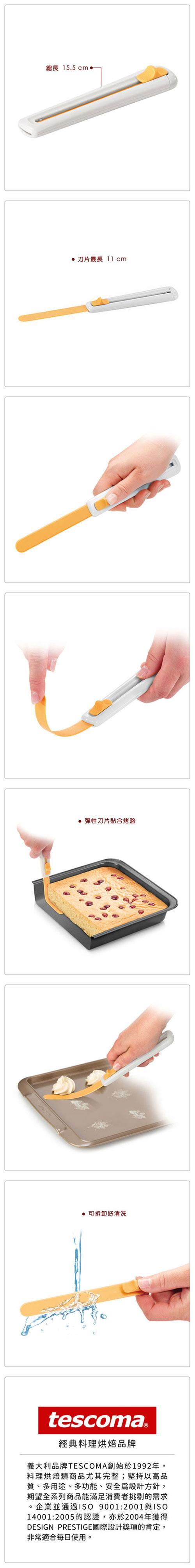 本商品一件入,適用手洗清潔、常溫使用;使用前請詳閱原廠圖示說明。出爐後的蛋糕、餅乾可能會黏著於烤盤上,此時需要一款實用的脫模刀輔助鬆開糕點底部、脫模更順利。推薦您此款彈性抹刀,如美工刀的使用方式可伸縮調整長度,將刀柄推至最前端「喀」一聲便可固定刀片;平滑刀片容易貼合平面烤盤,具彈性可依模具邊角彎曲服貼,輔助鬆動黏附盤底的蛋糕、薑餅、蛋白糖霜等;亦適合依蛋糕型體隨心塗抹、刮勻奶油,不易破壞其外型。收納時僅需推至刀柄底部「喀」一聲即可;可由刀柄後端拆卸清洗更乾淨,是您烘焙的實用推薦。