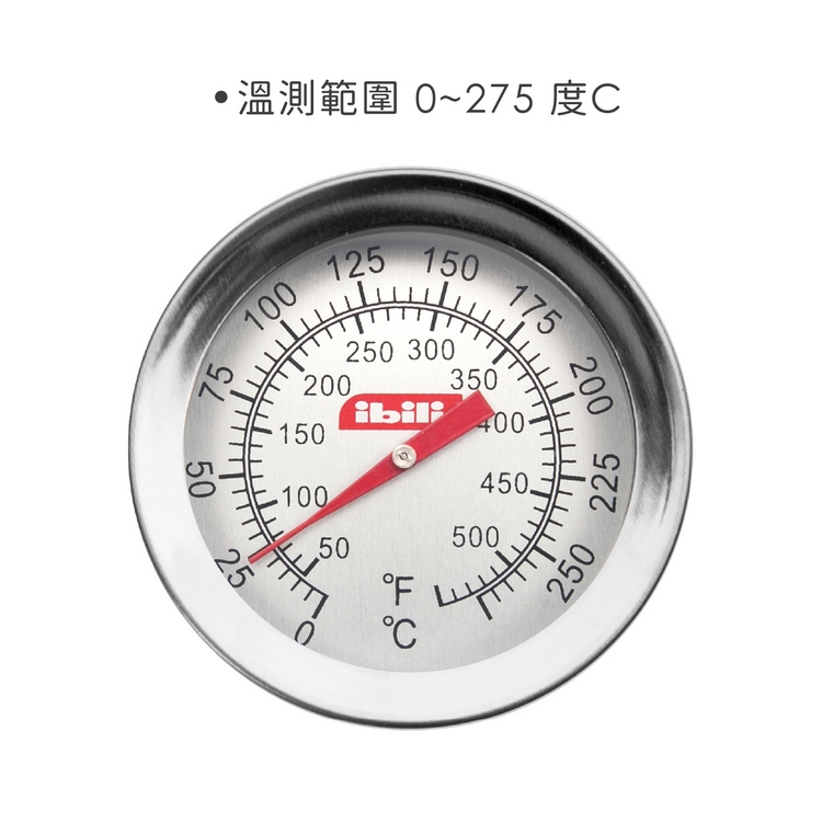 1. 溫測範圍 0~275 度C (待肉品從烤箱取出後始可溫測);溫度計可隨食材放入烤箱內使用,適烤箱溫度最高 150 度C (約 300 度F),金屬部分遇高溫可能變色。
