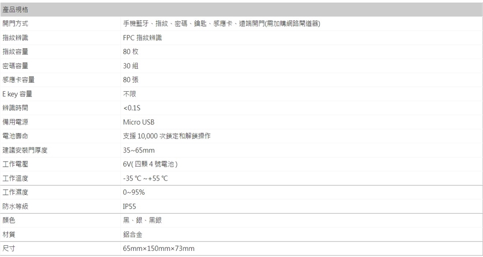 ✓ 指紋、密碼、鑰匙、感應、藍牙