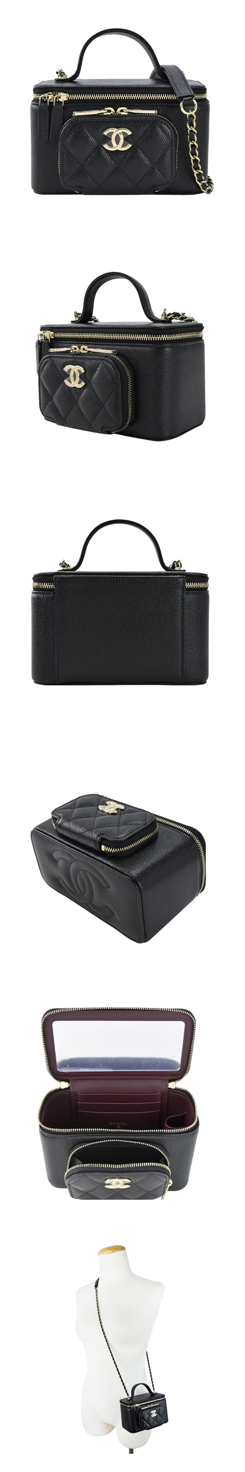 CHANEL經典雙C LOGO菱格紋小牛皮口袋化妝/兩用包(黑色)