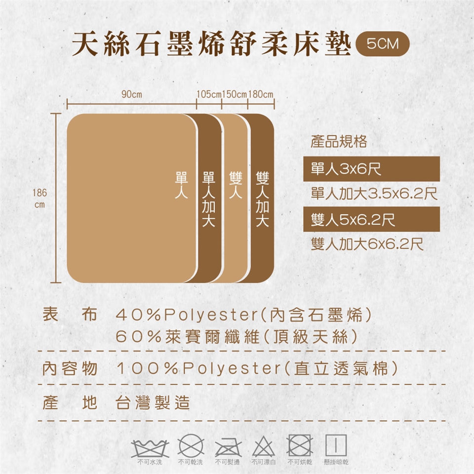 洗滌方式:『表布』可水洗、請使用中性洗潔劑清洗,禁用漂白劑、吊掛晾乾