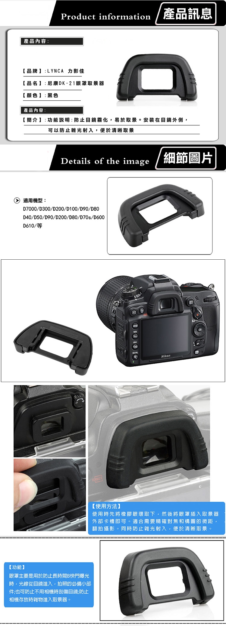 適用:Nikon D610 D80 D90 D70 D750 D7000 D600