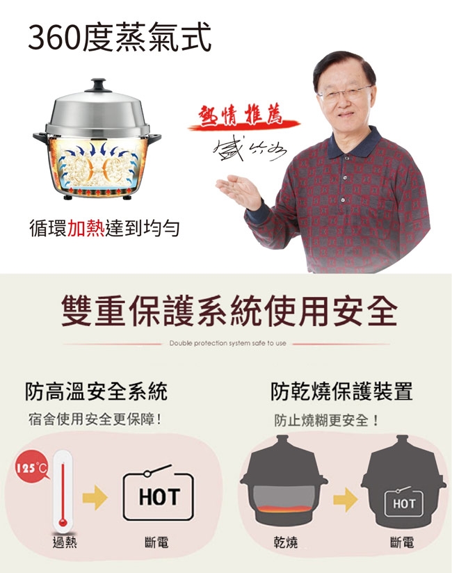 ◎高溫、乾燒自動斷電,雙重保護更安心