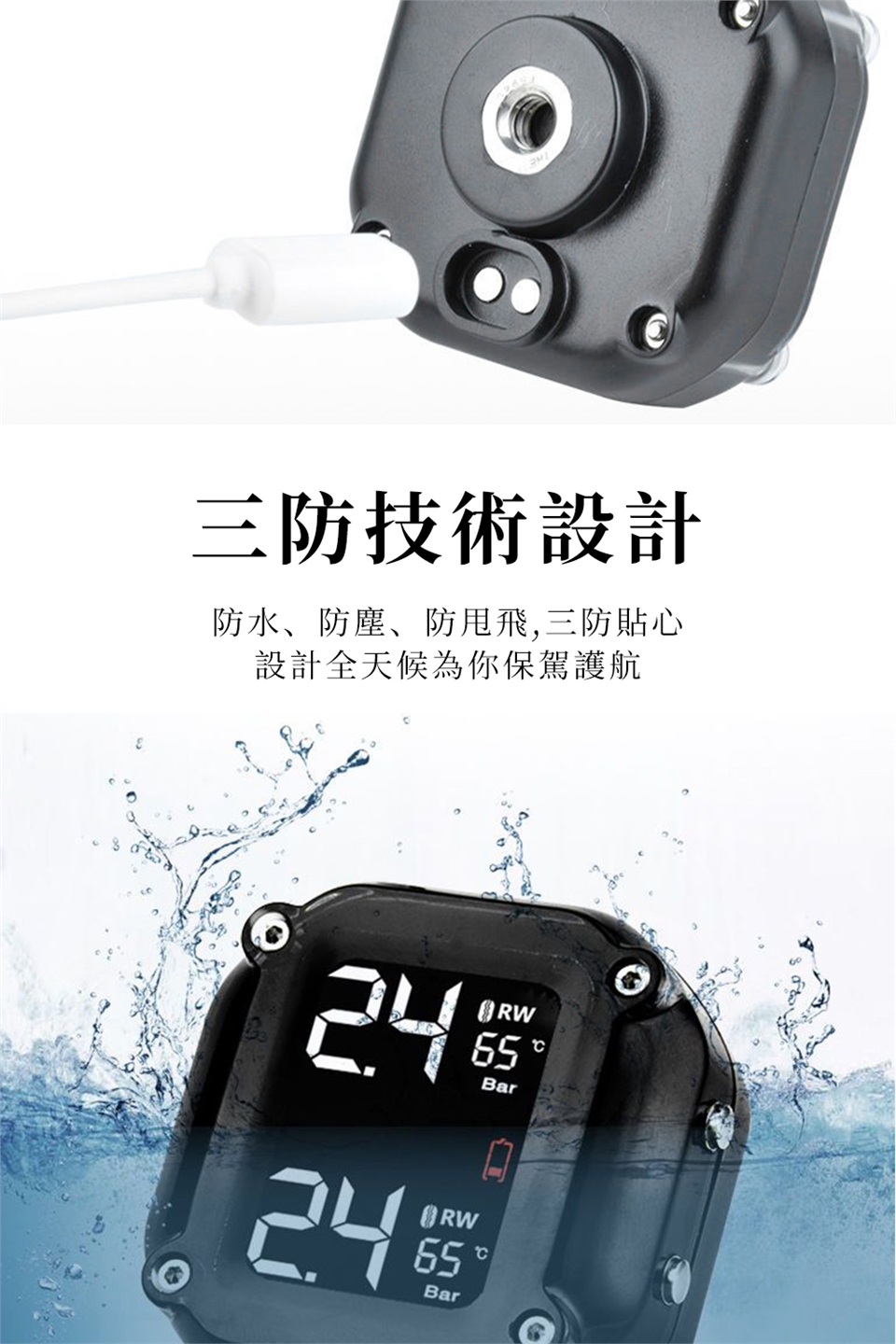 三防設計(採用磁吸線充電,完全杜絕水氣)