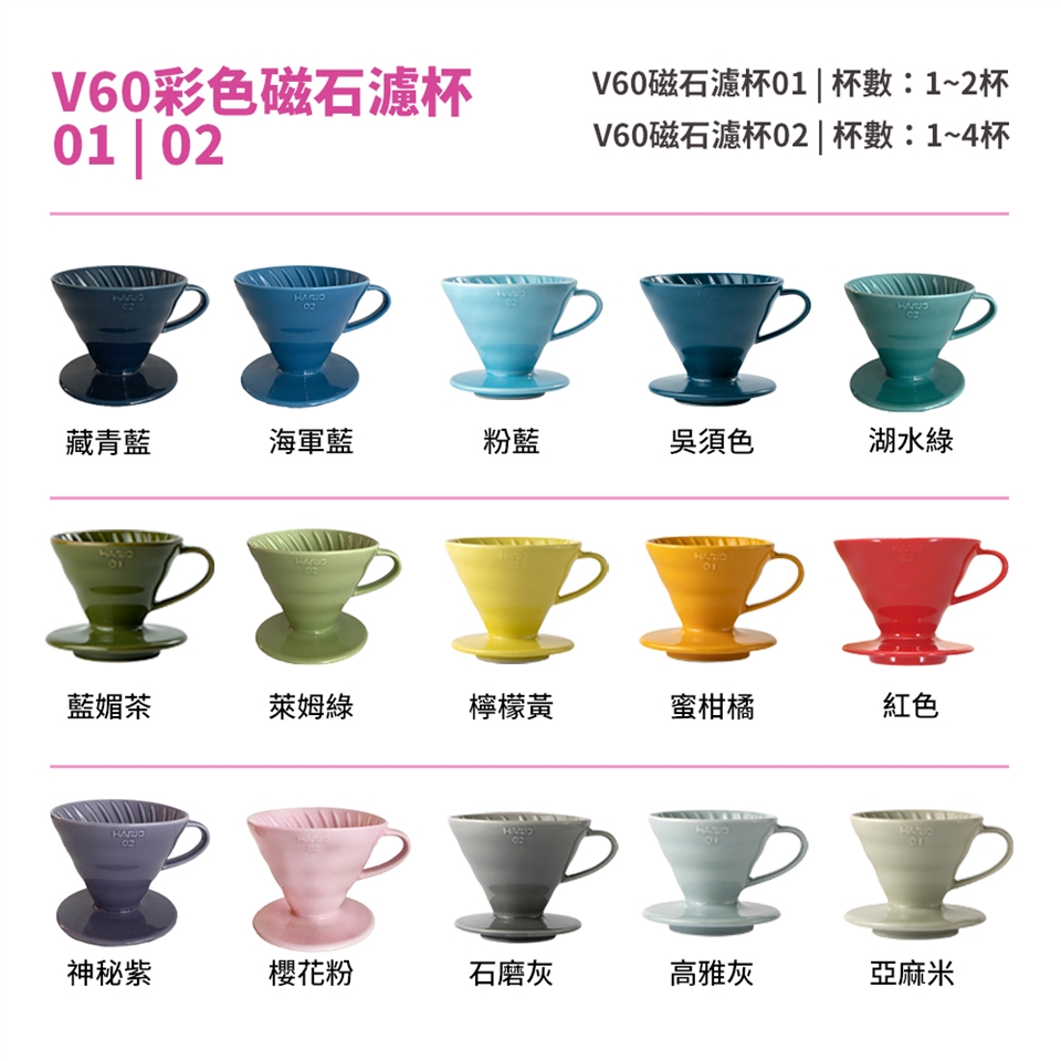 品名:【HARIO】V60 彩虹磁石系列濾杯 01號(1~2人份)