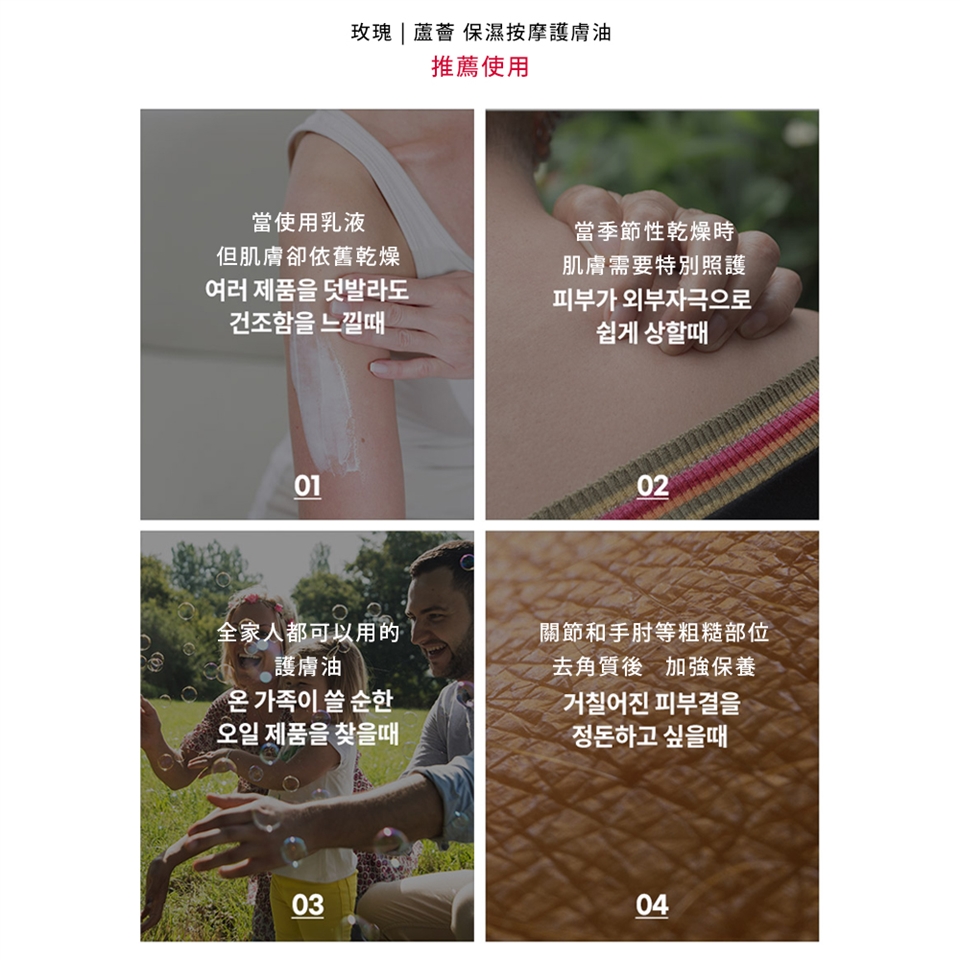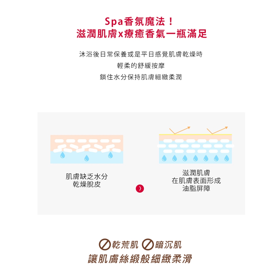 用途:滋潤肌膚 用法:均勻塗抹於肌膚