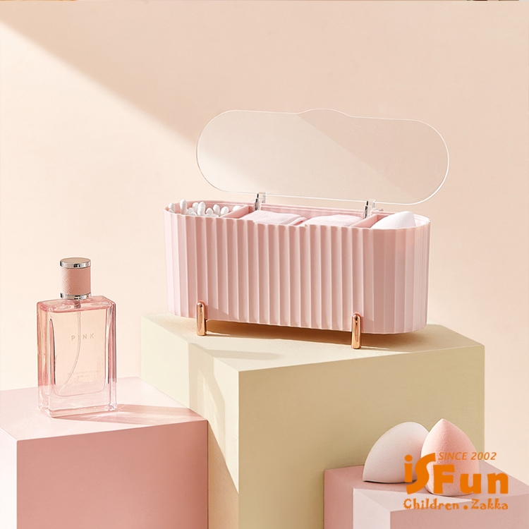 三格設計可放入化妝棉/棉花棒/美妝蛋等化妝品配件,