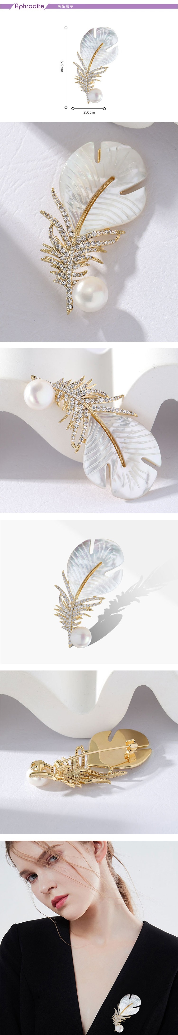 【愛芙晶鑽】奢華貝殼天然淡水珍珠羽毛造型胸針 造型胸針 珍珠胸針