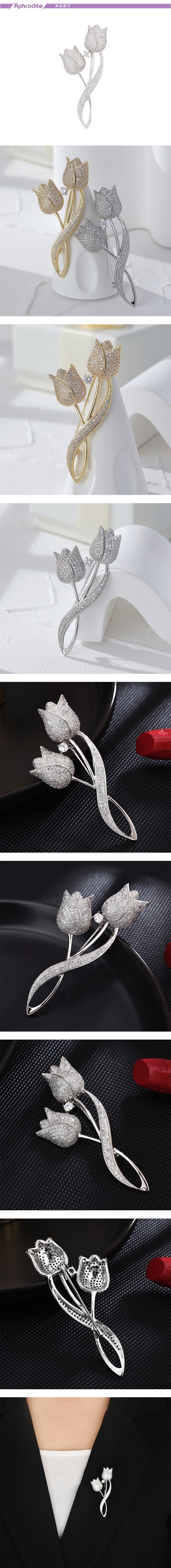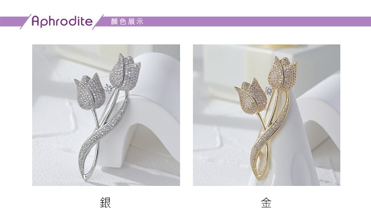 【愛芙晶鑽】重工滿鑽鑲嵌鬱金香花朵造型胸針 造型胸針 美鑽胸針 (2款任選)