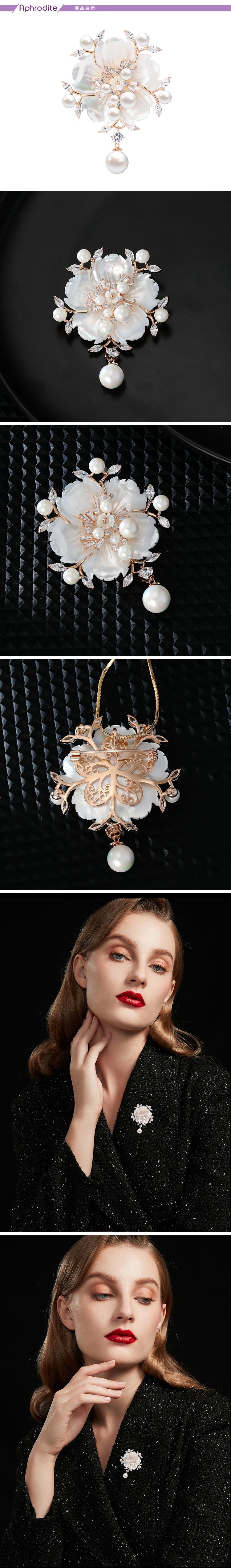 【愛芙晶鑽】設計款天然貝玫瑰花朵氣質美鑽珍珠造型胸針 造型胸針 美鑽胸針 珍珠胸針