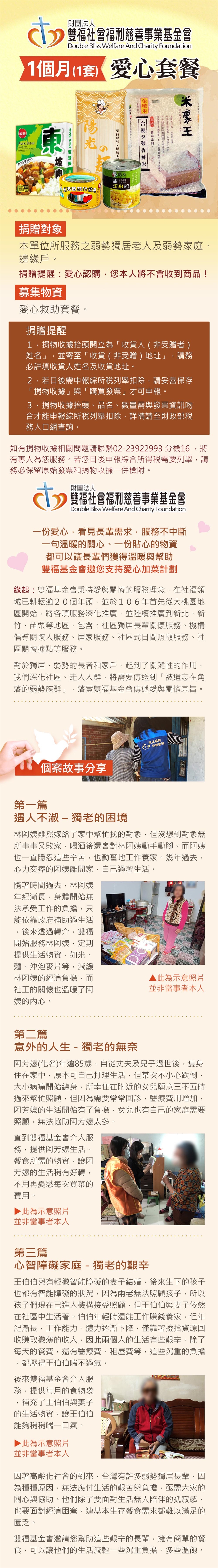 品名:《雙福基金會x愛心套餐》認購雙福基金會愛心救助套餐-1個月(購買者不會收到商品)