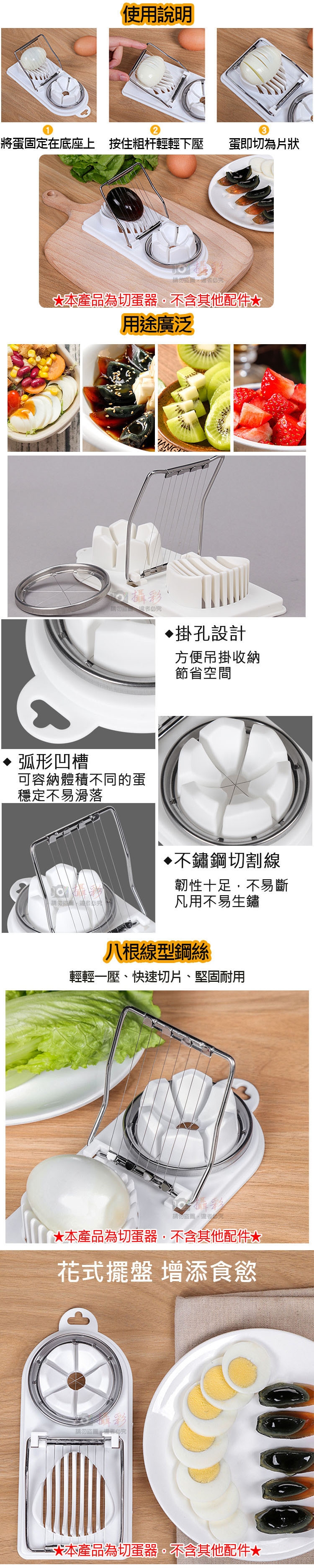 ●一器多用,切蛋、切水果都很順手。※請勿用於硬質食材,避免鋼絲斷裂※