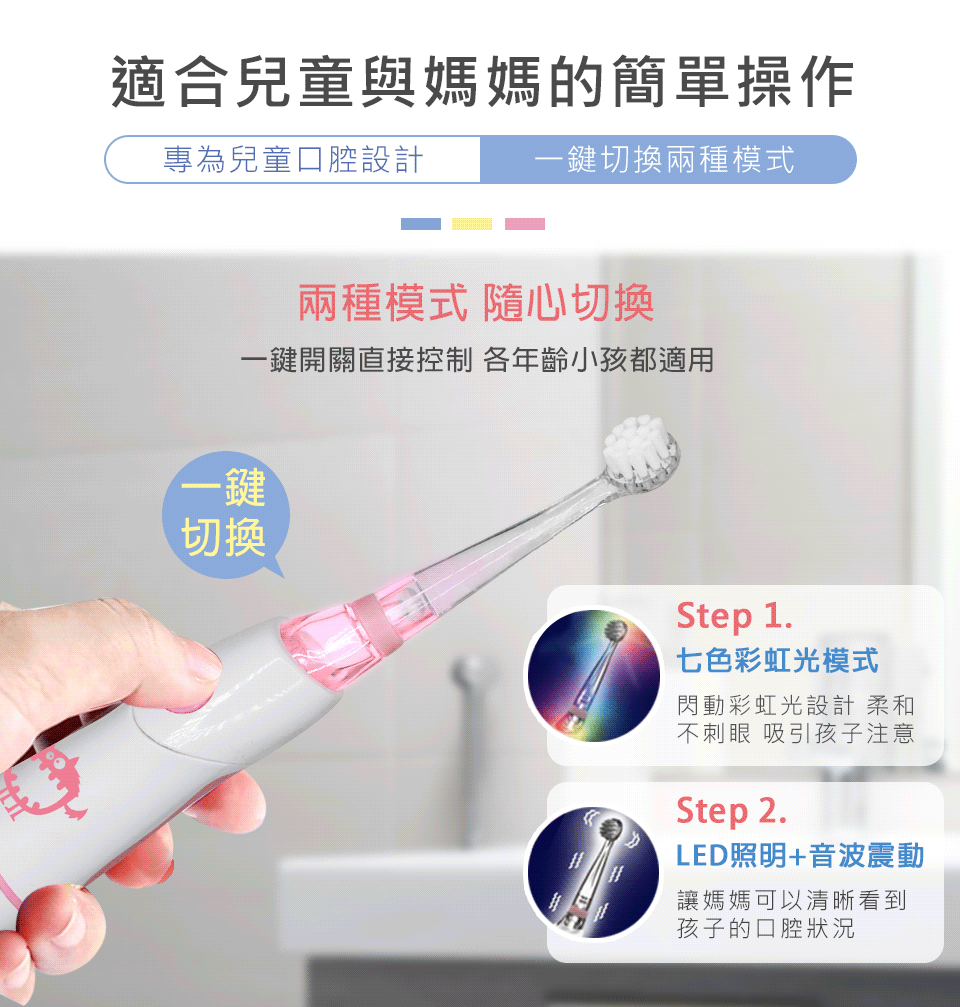 1. 【SAMPO聲寶】幼童採光音波牙刷TB-Z1806CL(共附2刷頭)*1 (藍 / 粉 兩色任選)