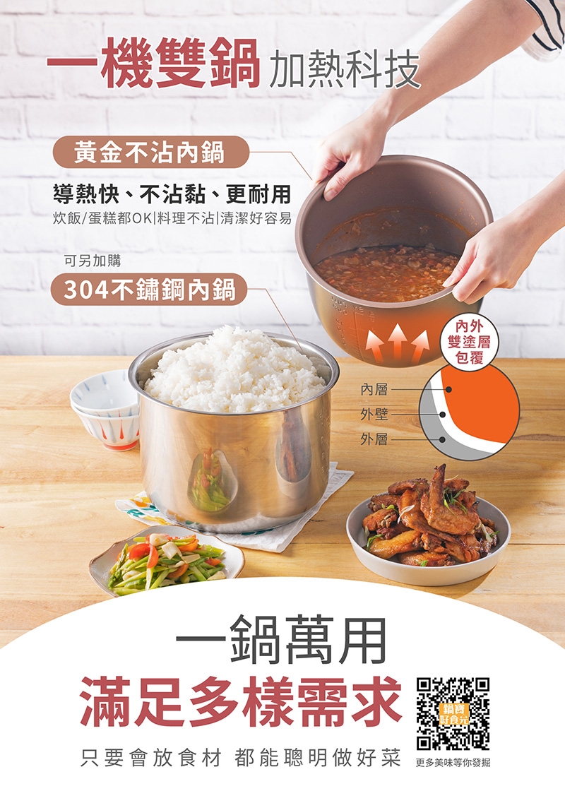 材質:內鍋/高科技不沾材質(耐熱260℃)