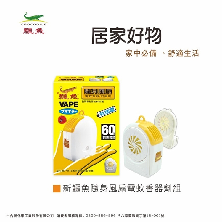 新鱷魚隨身風扇電蚊香器劑組合-A許可證字號:環署衛輸0716號