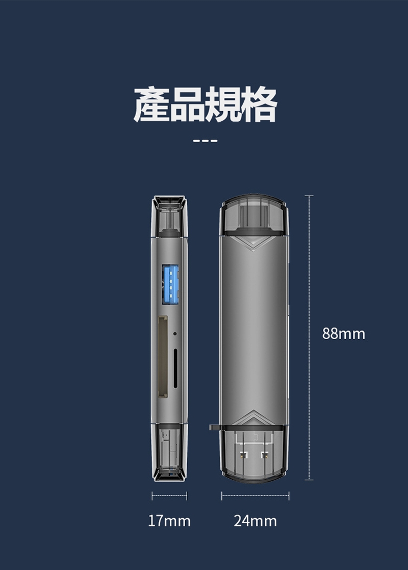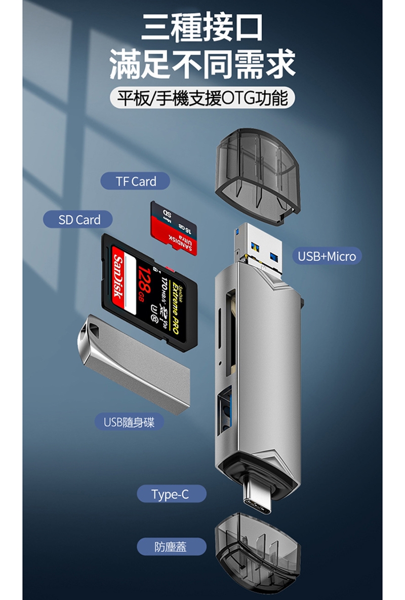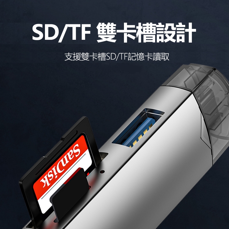 ◆3大讀卡功能,SD卡/TF卡/USB隨身碟