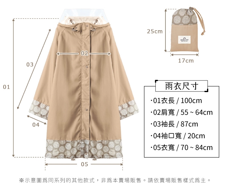 ●另附有收納袋,讓雨衣體積變小,不占空間。