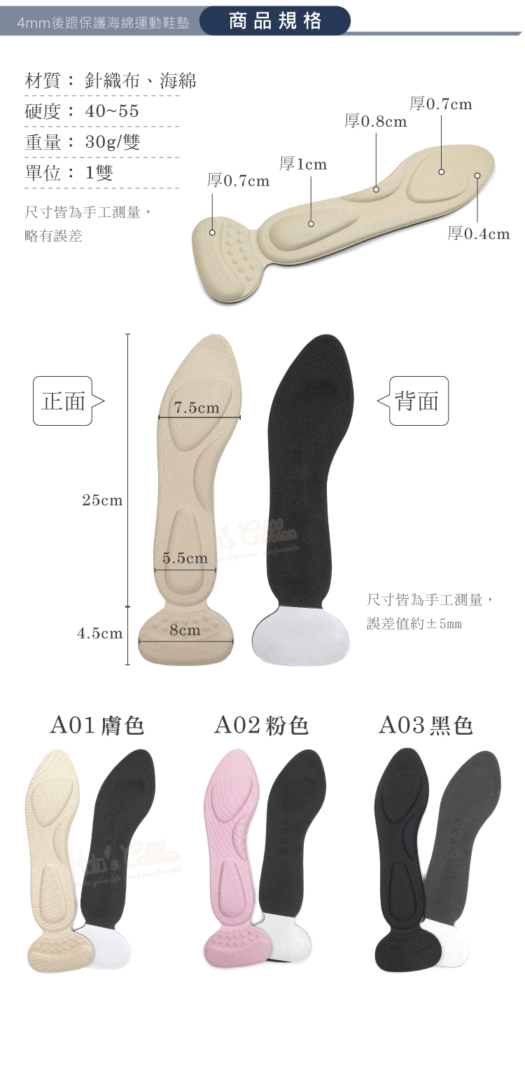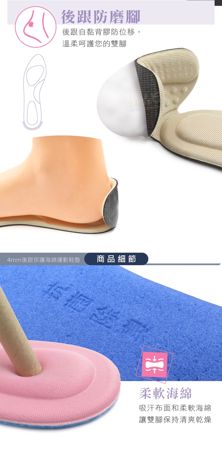 後跟防磨腳:後跟自黏背膠防位移,溫柔呵護您的雙腳