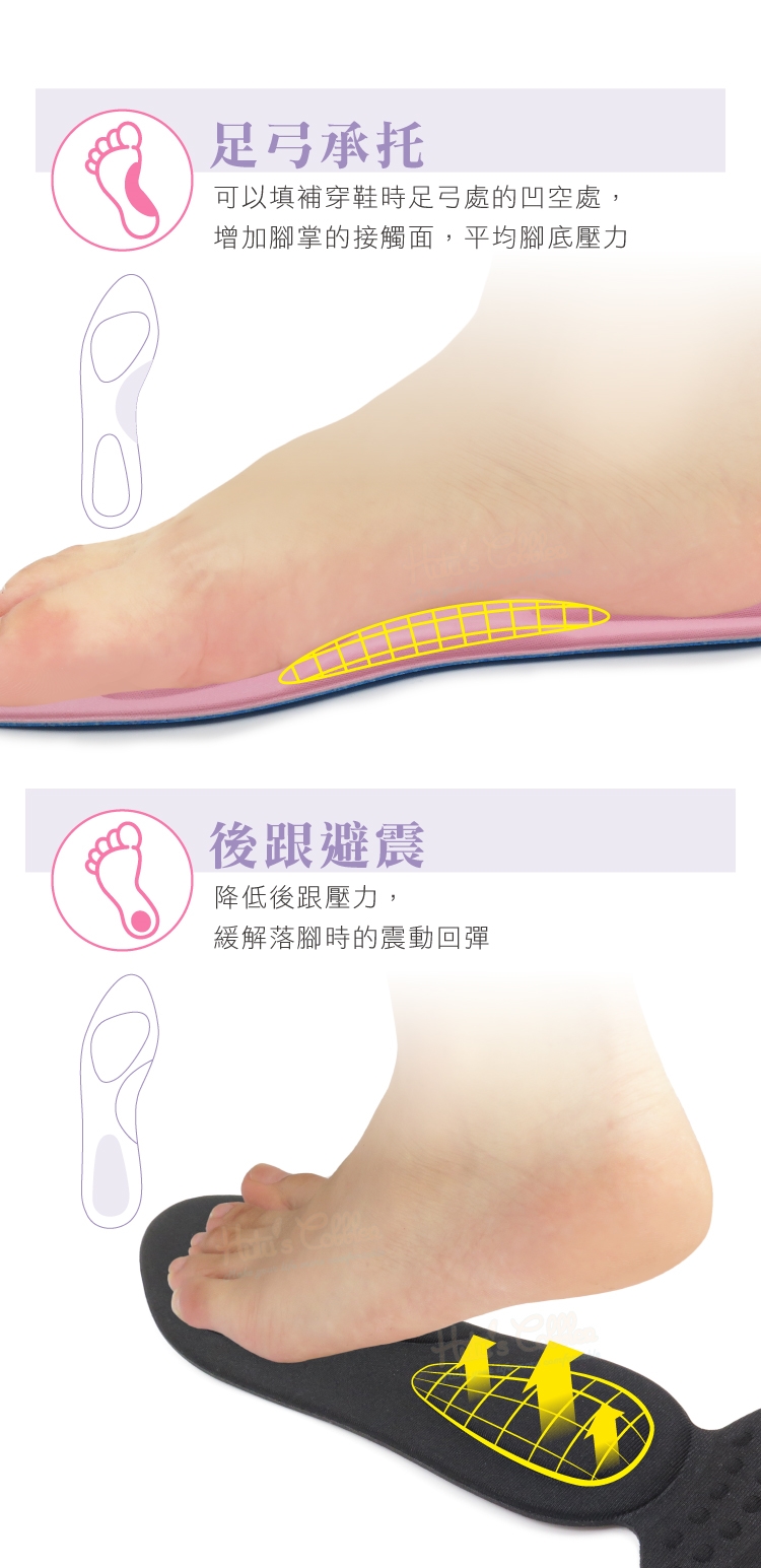 足弓承托:可以填補穿鞋時足弓處的凹空處,