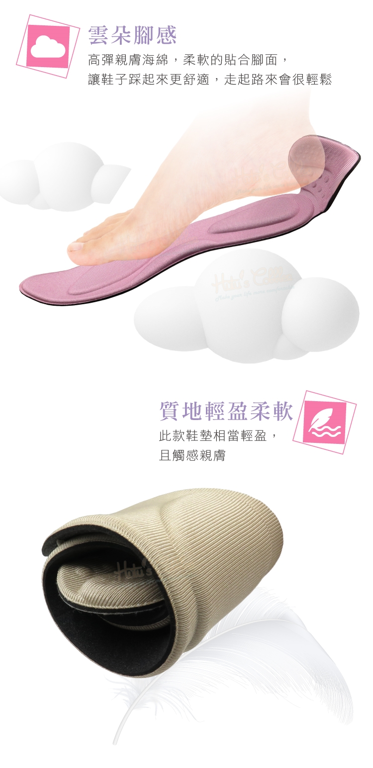 雲朵腳感:高彈親膚海綿,柔軟的貼合腳面,