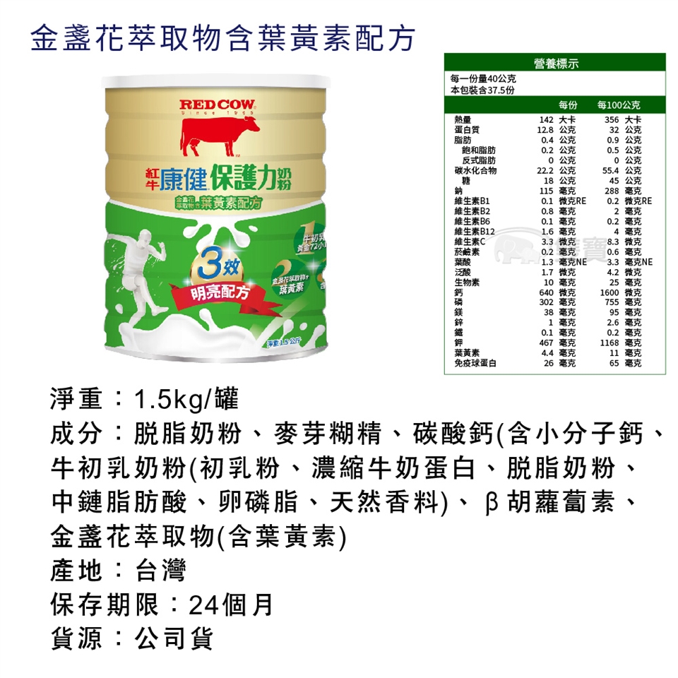 成分:脫脂奶粉、麥芽糊精、碳酸鈣(含小分子鈣、牛初乳奶粉(初乳粉、濃縮牛奶蛋白、脫脂奶粉、中鏈脂肪酸、卵磷脂、天然香料)、β胡蘿蔔素、金盞花萃取物(含葉黃素)