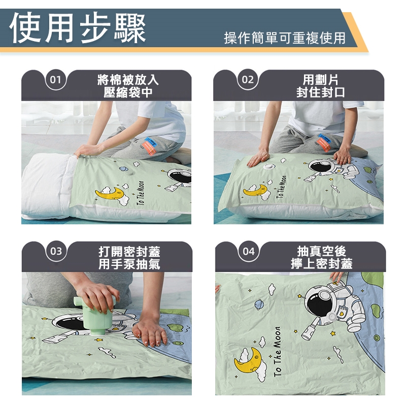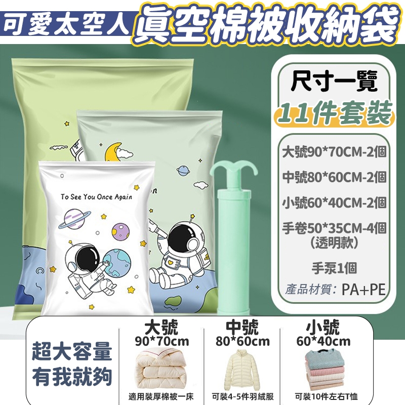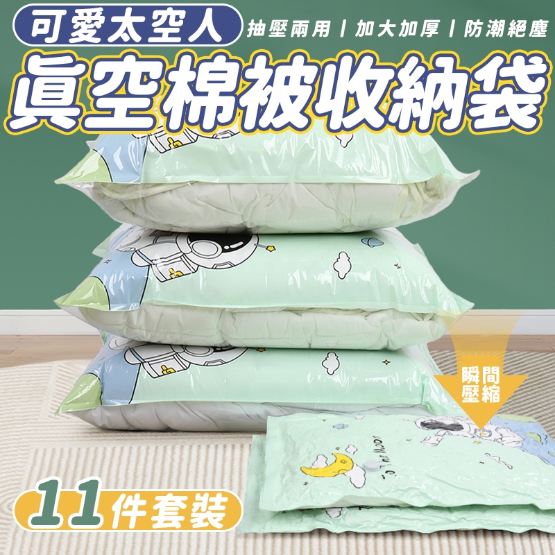 太空人真空棉被收納袋11件套裝,多場景使用,旅行、居家、宿舍都可使用