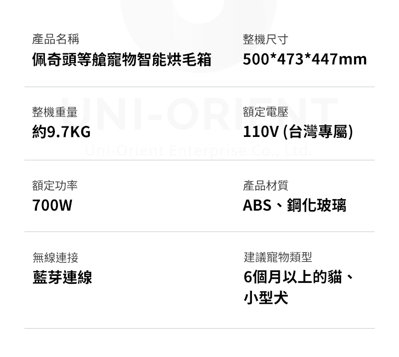 - (2) 未能出示聯合東方保固卡或購買明細,及卡面內容經塗改損毀以致無法辨識。產品係由於天災(火災、地震、淹水等)、寵物啃咬、不當人/寵為使用(自行拆修、外力破壞或改裝等)、人為疏失(摔壞、遺失或未妥善保管等),或其他非正常因素所造成之損壞。