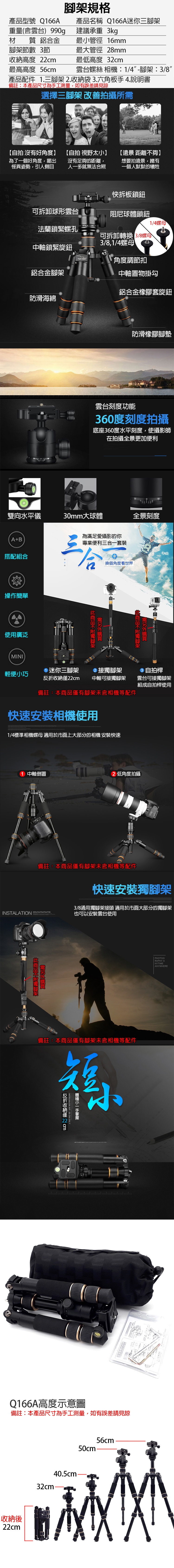 名稱:Q166A 迷你三腳架